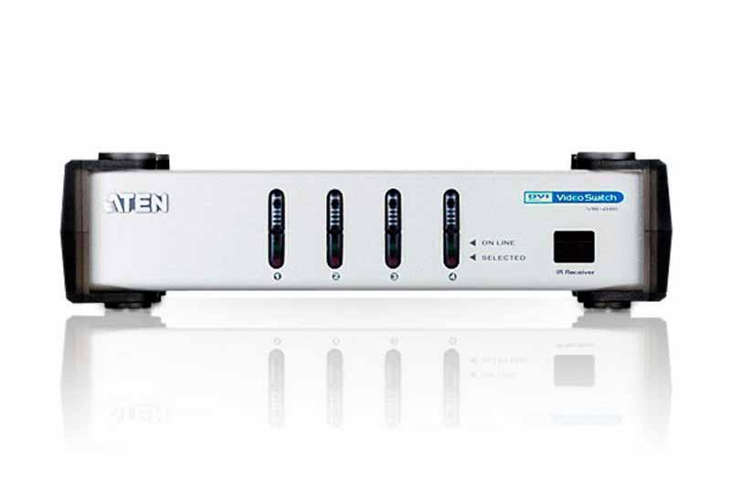 VS461-AT-G – Видео Коммутатор ATEN VS461 позволяет передавать видеосигнал с 4 подключенных к нему устройств c DVI интерфейсом (например, DVD-проигрывателей или компьютеров) на один DVI-дисплей с одновременным переключением стереозвука. Теперь нет необходимости иметь отдельно устройство отображения на экране и набор динамиков для каждого из мультимедийных средств.Коммутатор видеосигналов VS461 превосходит предыдущие разработки благодаря поддержке Single Link DVI (Digital Video Interface), замечательному качеству видео до 1920 х 1200. Интерфейс DVI поддерживает как цифровой видеовход (ЖК-дисплеи, проекторы, «плазмы», цифровые телевизоры, декодеры), так и аналоговый (традиционные мониторы и телевизоры).