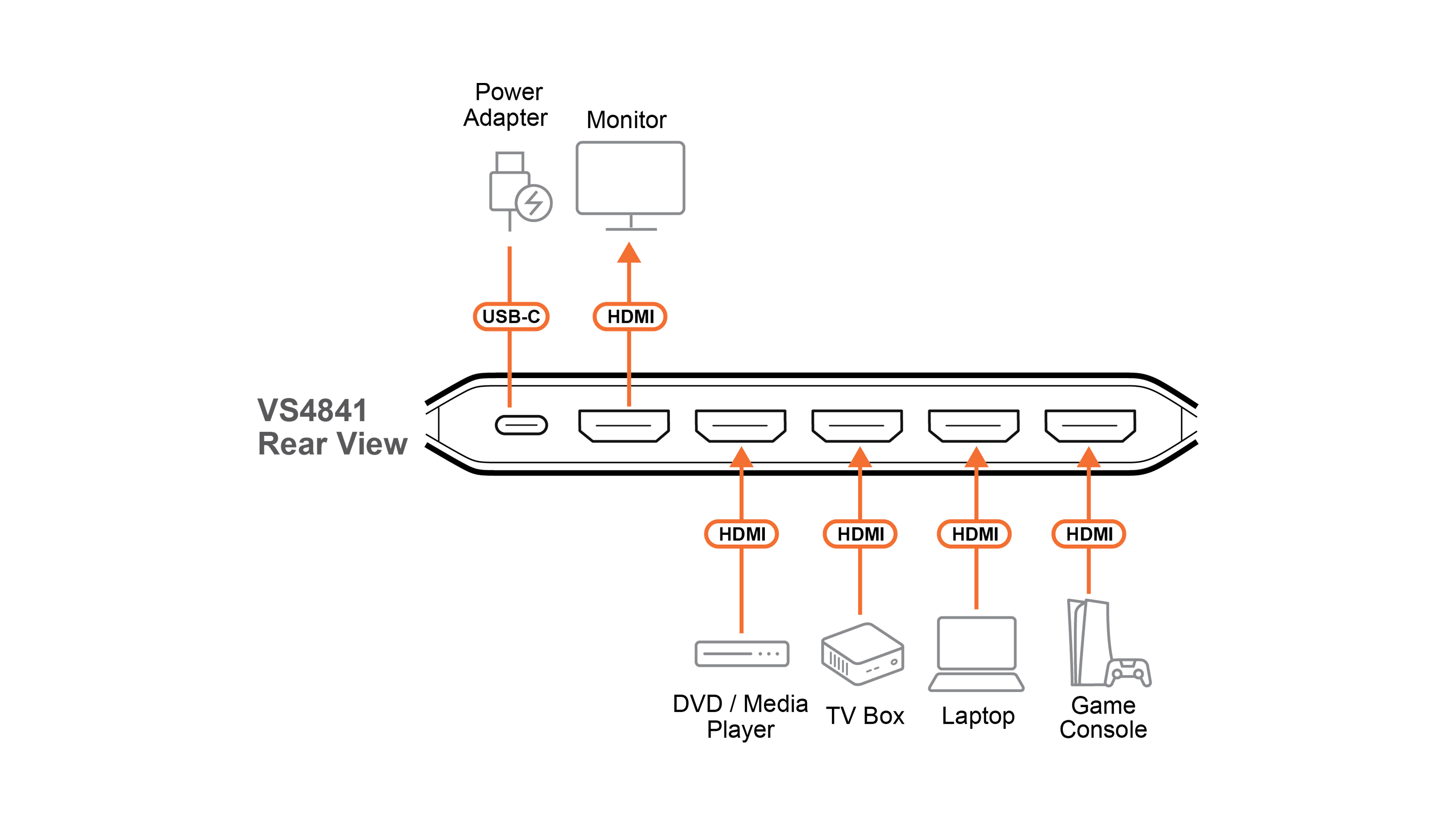 Модернизируйте домашнюю развлекательную систему или профессиональную AV-среду с помощью VS4841 — 4-портового HDMI-коммутатора. С ним легко управлять четырьмя источниками на одном дисплее: простое нажатие кнопки — и вы мгновенно переключаетесь между консолью, медиаплеером, ПК и ТВ-приставкой. Технология RapidSync™ обеспечивает безупречное качество изображения True 4K, устраняет путаницу проводов и делает просмотр по-настоящему увлекательным.Ключевые преимущества: