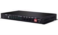 Cypress CPLUS-V4H2HA – матричный коммутатор 4х2 сигналов интерфейса HDMI 2.0 разрешением до UHD 4K (4096x2160/60 при 4:4:4) с поддержкой технологии HDCP 2.2 и расширенным набором заводских конфигураций EDID-блока. Поддержка эмбеддированного аудио, встроенная передача 8-канального LPCM, Bitstream и HD Bitstream. Устройство управляется по ИК и RS-232 (по RS-232 идет управление устройством отображения).