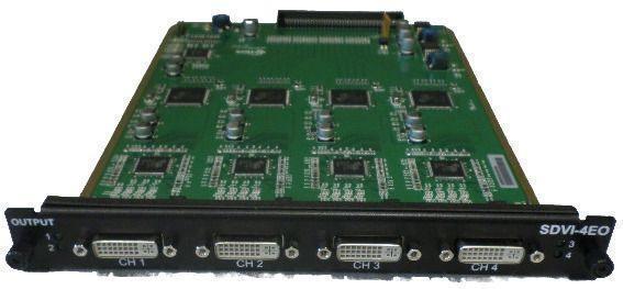 Opticis SDVI-4EO - 4-х канальная плата выходов модульного матричного коммутатора Opticis OMM-1000 с 4-мя портами интерфейса DVI-D. Поддерживаются разрешения до 1920х1200, 60 Гц и 1080p.
