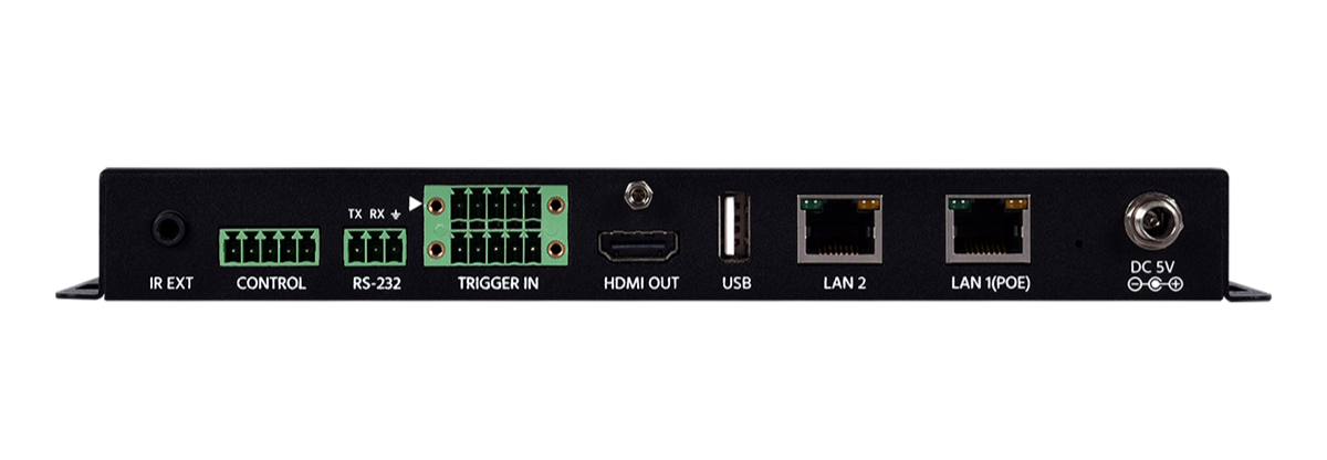 Может работать как главный контроллер помещения, 8 триггерных входов. Питание по PoE или от внешнего блока. Управление устройством осуществляется «сухими» контактами, по ИК, RS-232 и IP (web-интерфейс и Telnet), по USB с помощью HID-устройств (клавиатура, мышь и др.).