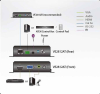• в режиме преобразователя: поддержка приемников с различными интерфейсами (DVI, DisplayPort или HDMI) - Передача сигналов интерфейса RS-232 - позволяет подключать терминалы или устройства с последовательным интерфейсом, такие как сенсорные экраны и сканеры штрих-кодов