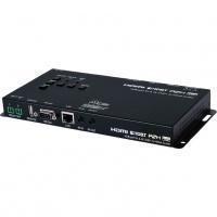 Приемник / масштабатор сигналов HDMI 4K/60 (до 4:4:4, 8 бит) с c HDCP 1.4 (2.2), Ethernet (RJ45), ИК (2х miniJack 3,5 мм) и RS-232 (D-Sub-9) из витой пары CAT5e с PoH (Power over HDBaseT) с локальным входом HDMI, расстояние приема до 100 м. Деэмбеддер аудио, 2 релейных выхода. Управление по ИК, RS-232 и IP (Telnet, web-интерфейс).
