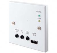 Настенная панель - приемник сигналов HDMI 1.4 1080p/60 (4Кх2К, 3D) с HDCP и CEC, ИК(2хmJack) и RS-232(mJack) из витой пары CAT5e с PoE, HDBaseT, без блока питания, расстояние приема до 100м