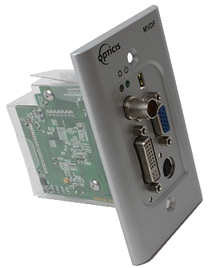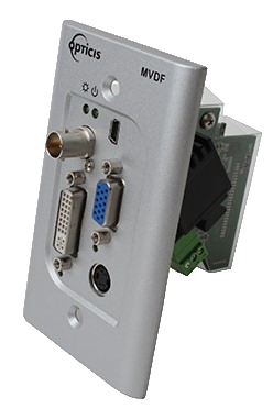 MVDF – настенный преобразователь сигналов DVI, VGA, композитного и S-Video в сигнал DVI со встроенным передатчиком сигнала по оптоволокну.