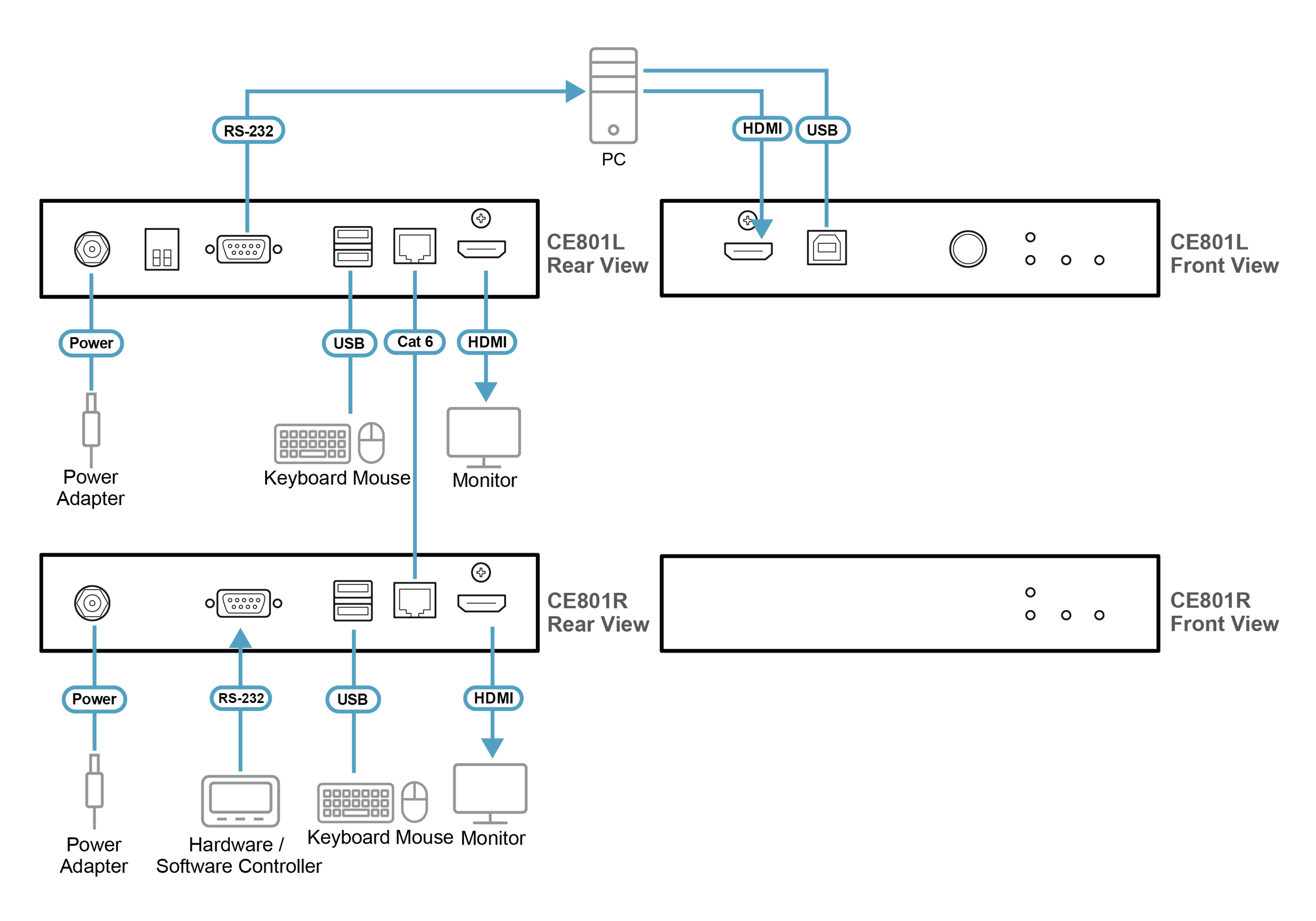 1 x CE801R USB True 4K HDMI KVM-удлинитель по кабелю Cat 6 (удаленное устройство)