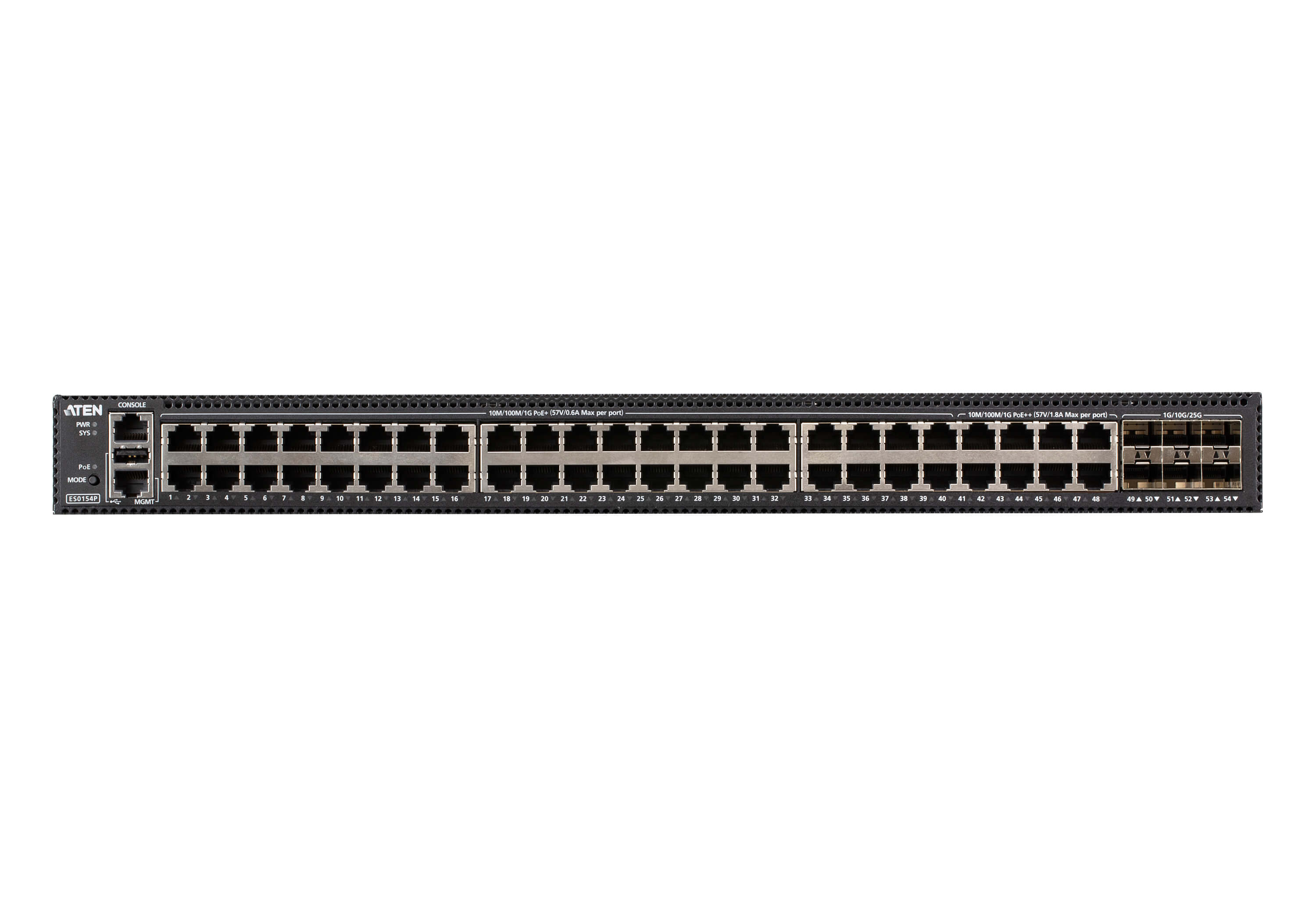 ATEN ES0154P — это 54-портовый управляемый гигабитный коммутатор уровня 2+, который становится связующим звеном в экосистеме решений ATEN для IP-KVM. Он предлагает готовый фундамент для инфраструктуры операционных технологий, минимизируя этап сложной настройки. Вы получаете не просто коммутатор, а высокопроизводительную платформу с полным набором функций L2+, дополненных статической маршрутизацией L3, сервером DHCP, IPv6 и LLDP для универсального повышения производительности сети. Универсальности подключению добавляет гибридная комбинация оптических портов SFP28 и медных RJ-45.